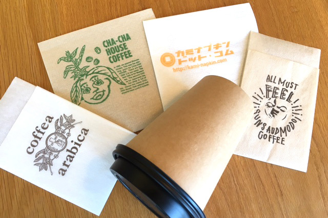 「紙ナプキン.com」では、定番の6つ折りをはじめ、最近のシアトル系カフェで人気の4つ折りの紙ナプキンにお店の名入れ印刷を承っております。